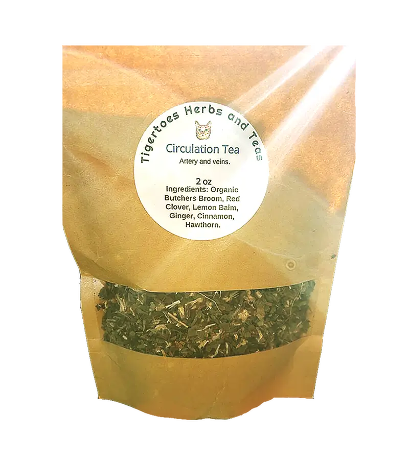 The Circulation Tea will move your senses and heart with every delightful sip. Ingredients: cinnamon, ginger, hawthorn, lemon balm, red clover, and organic butcher’s broom.