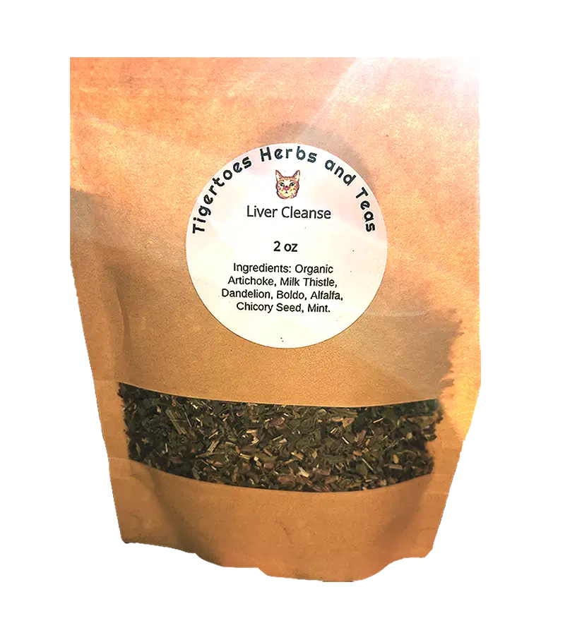 The organic Liver Cleanse Tea purifies the liver with herbal goodness. Ingredients: alfalfa, boldo, chicory seed, dandelion, organic artichoke, milk thistle, and mint.